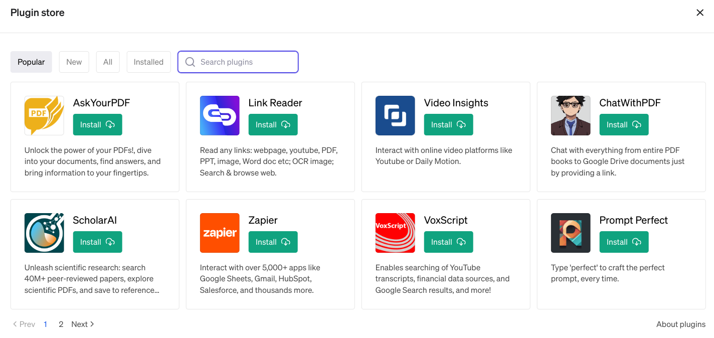 ChatGPTに様々な機能を追加するプラグイン。有料のChatGPT4.0だけの機能。
