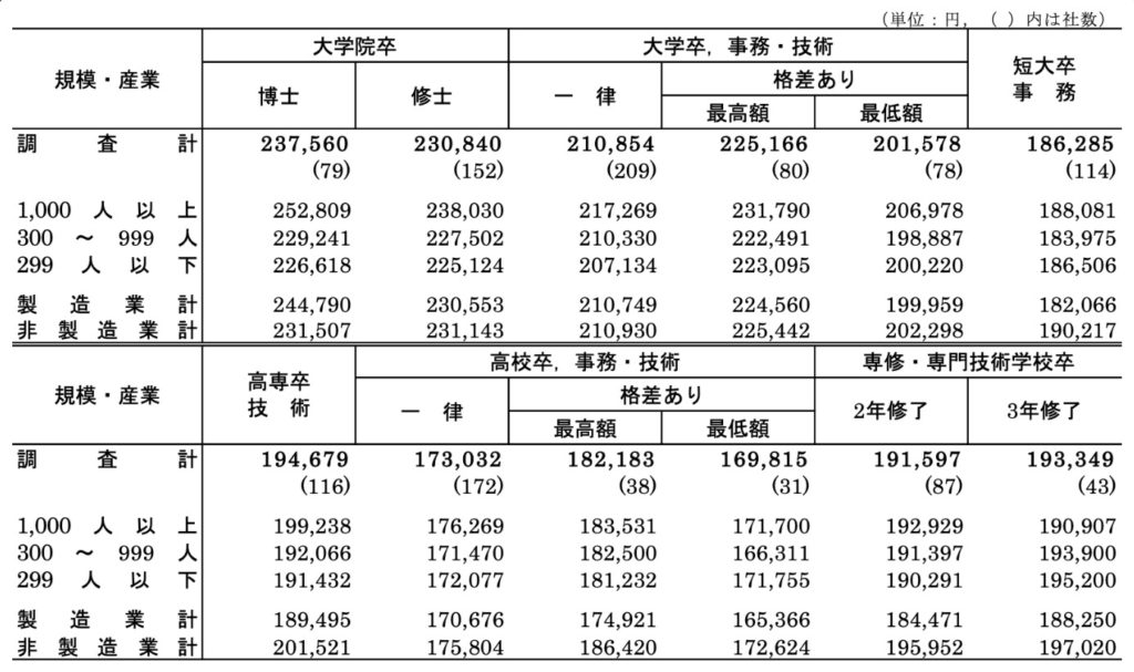 ちょうどこの両者の中間となる23万円は日本の大卒初任給と同じ金額となる。