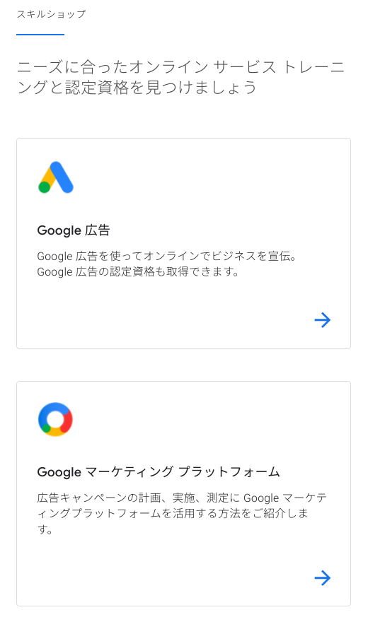 GoogleスキルショップはGoogle公式eラーニングコース。自分のペースで学習を進めて認定資格を取得できる。