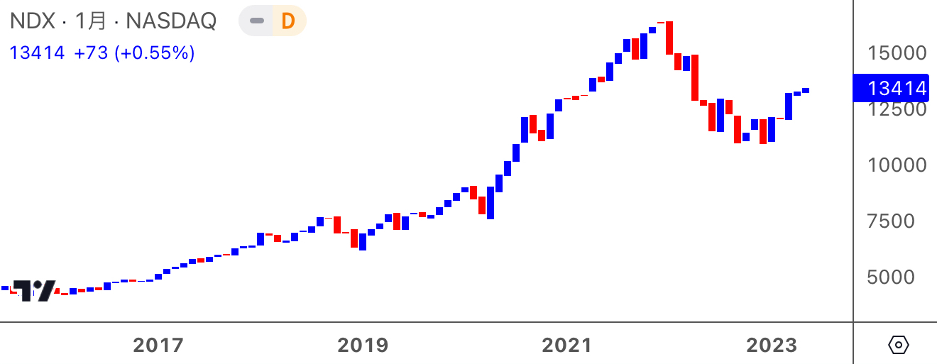 NDXの長期推移。FIREで大暴落に耐えられるか?