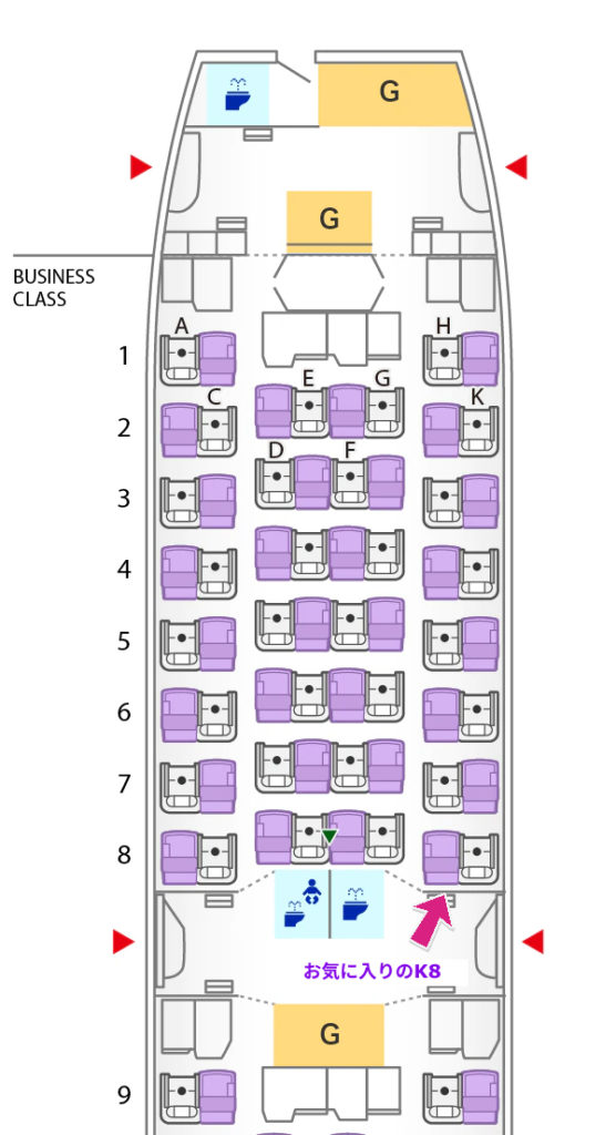 私のお好みは窓際シングルシートで、B787系などの機種ではK8のシートが1番のお気に入りの場所だ。