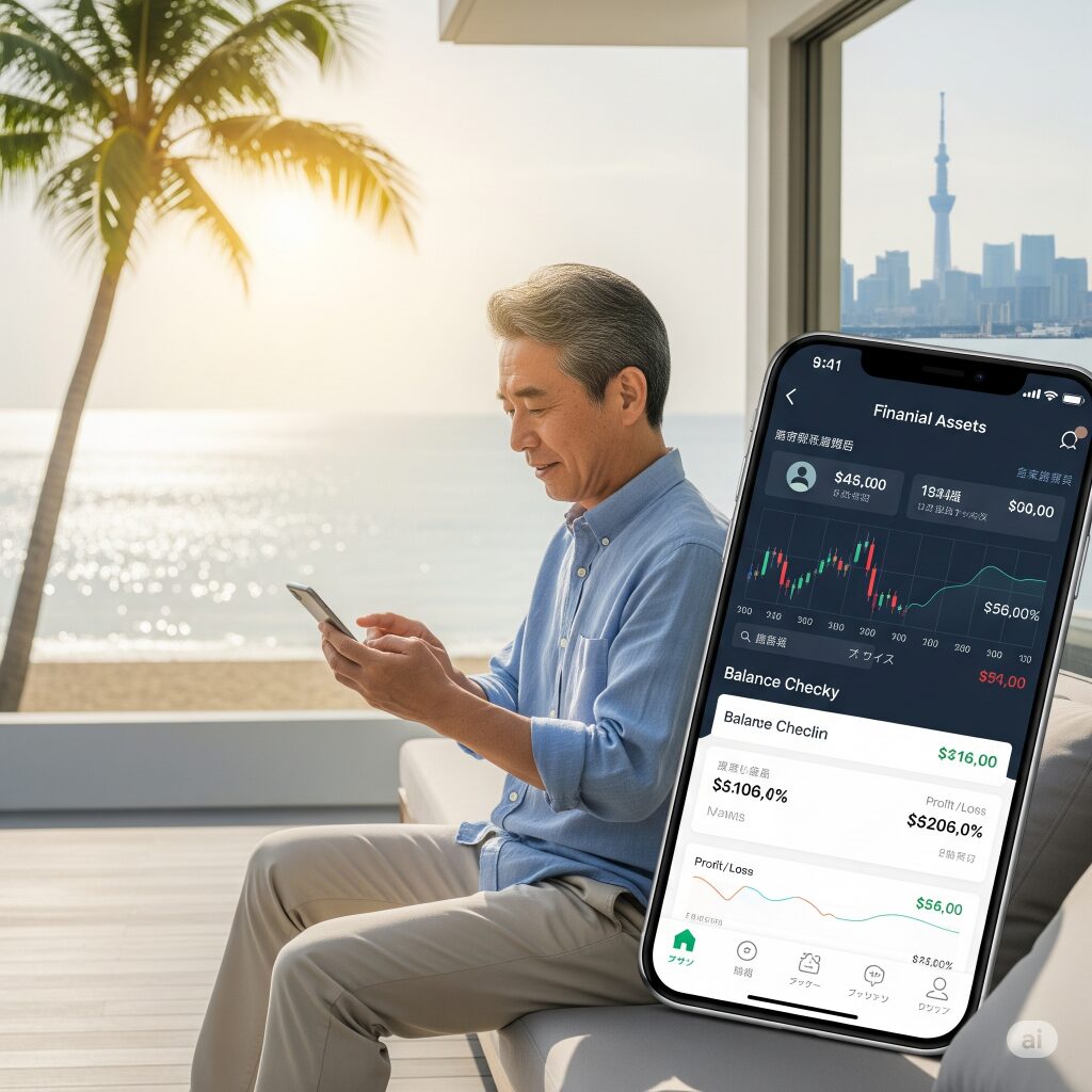 主要なネット証券会社は、すべてスマホアプリを提供している。SBI証券、楽天証券などのアプリを使えば、株式・ETFの売買、残高確認、損益計算が瞬時に行える。海外からの取引も制限がない。