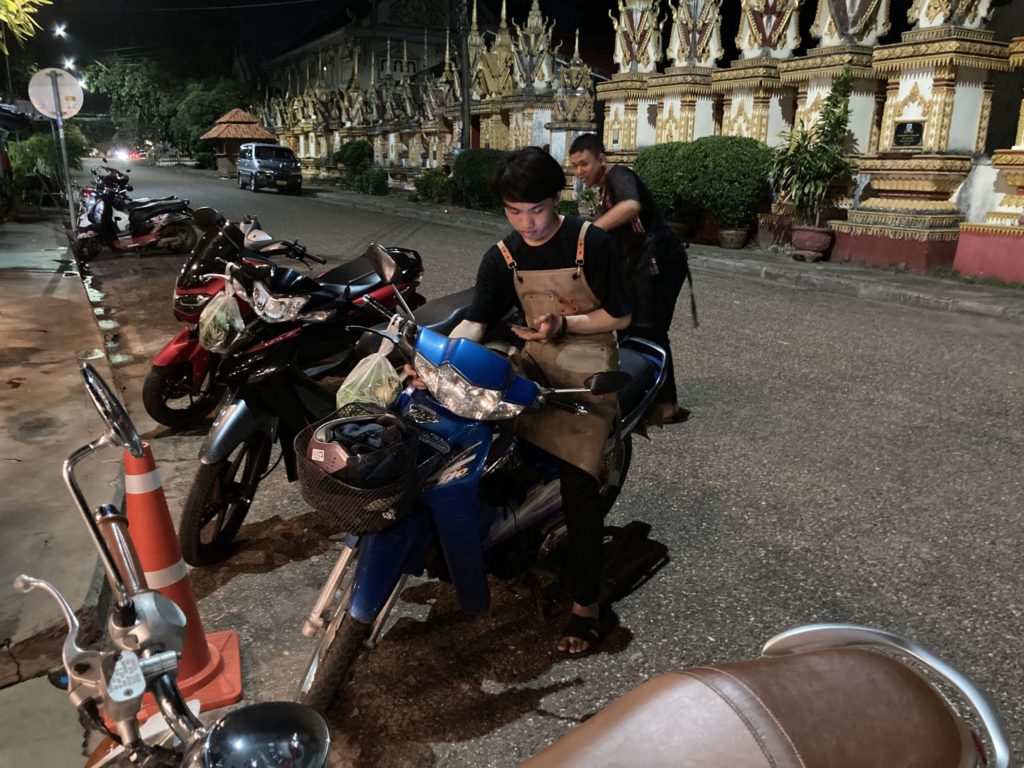 この写真のように、外国人向けレストランの駐車場で客待ちをするバイクのお兄ちゃんが大勢いる。